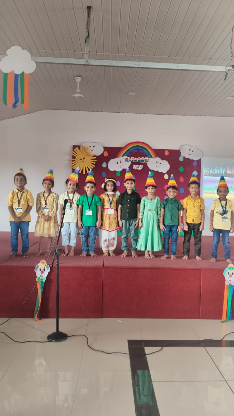 The classrooms were beautifully decorated with rainbow cut-outs, balloons, and colourful streamers. Teachers organized fun activities such as rainbow colouring, paper craft, and singing rhymes related to colours. The children enjoyed listening to the story of how rainbows are formed and even tried to draw their own rainbows.