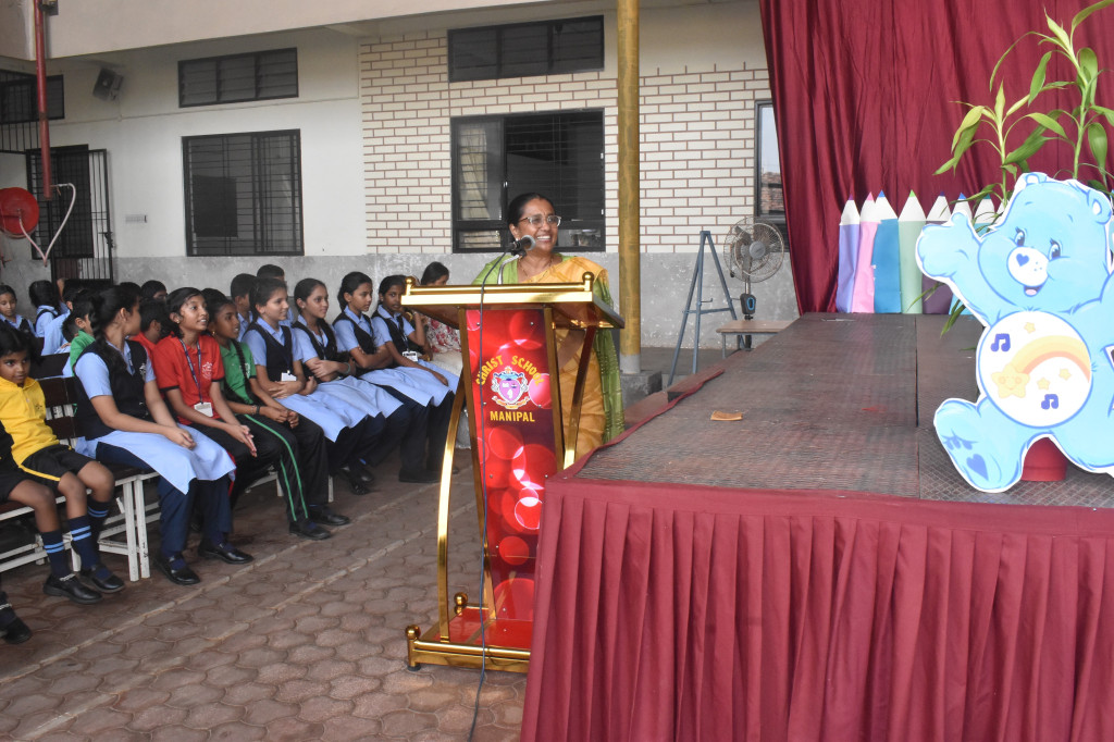 Principal Eliza Vaz addressed the gathering with her motivational words, wishing and blessing all the students on this special day.