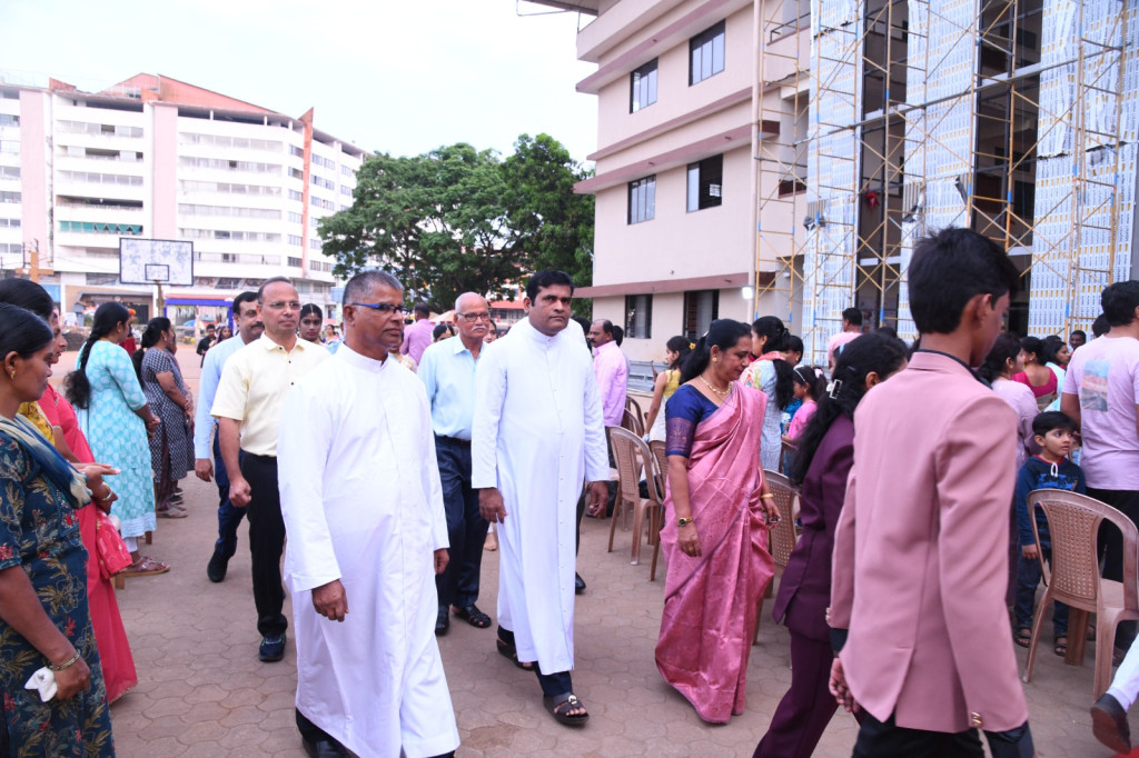 The evening was set on a reverent note with the school choir’s rendition of the School Anthem, after which Mrs. Reshma Suares extended a warm welcome. A felicitation ceremony, conducted by Mrs. Cyrilla Lobo, honoured students for excellence in academics and athletics, including the Class 10 toppers of the academic year 2024–25. The Chief Guest was introduced by Mrs. Sumalatha, felicitated by the Managing Committee members, and delivered an inspiring address urging students to uphold strong family values and strive for excellence.