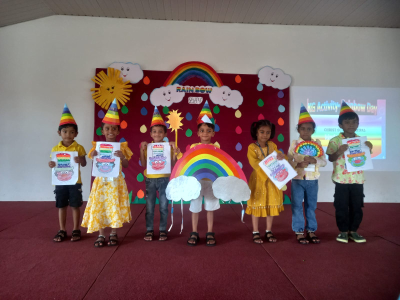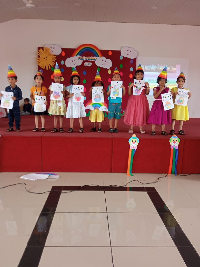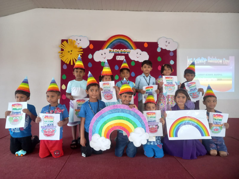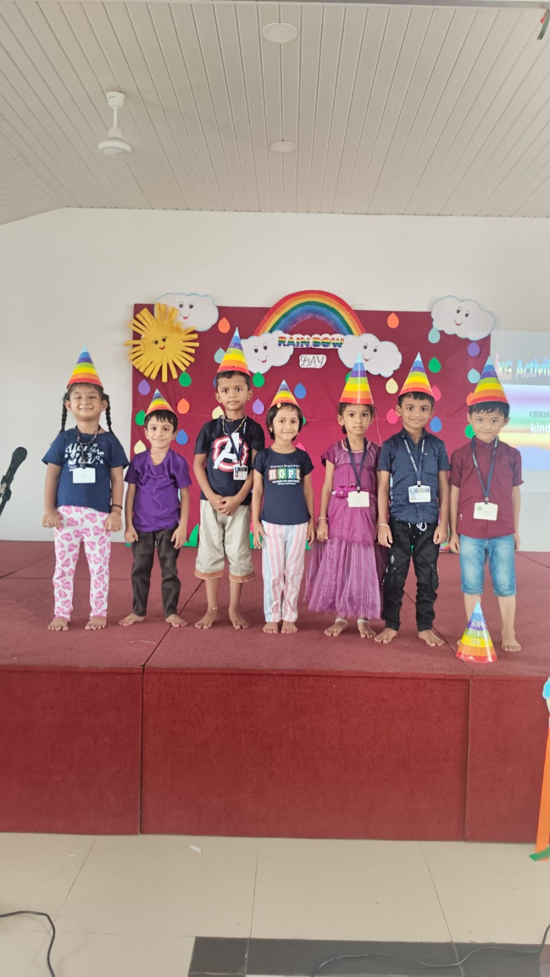 Rainbow Day was celebrated at Christ School with great excitement and joy in our kindergarten on Wednesday, July 2nd, 2025. The day was full of colours, smiles, and creativity. All the children came dressed in bright and colourful clothes, each one representing a colour of the rainbow — red, orange, yellow, green, blue, indigo, and violet.