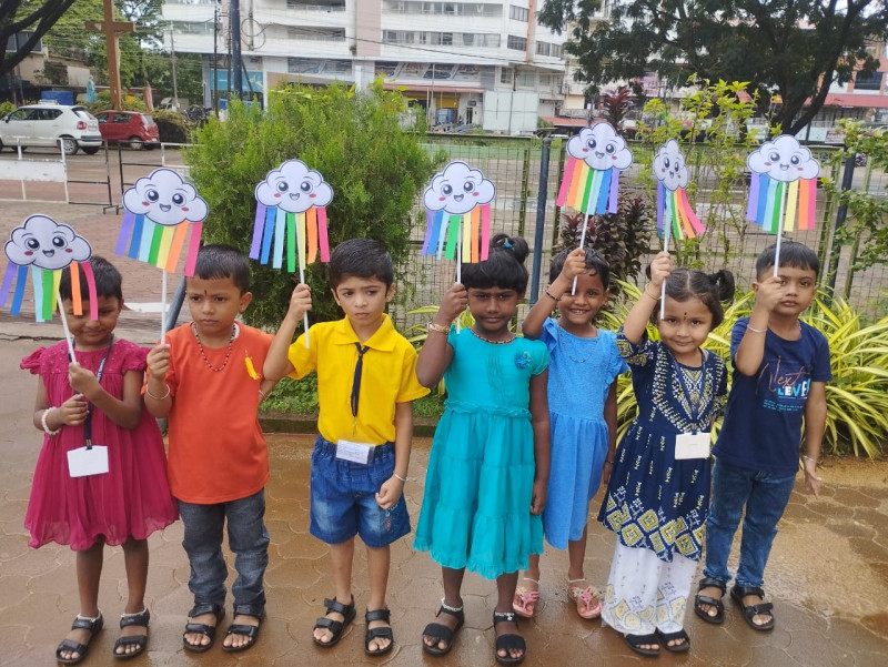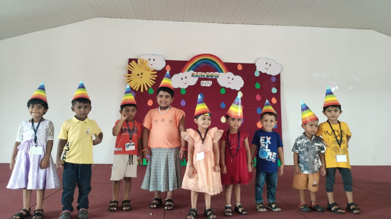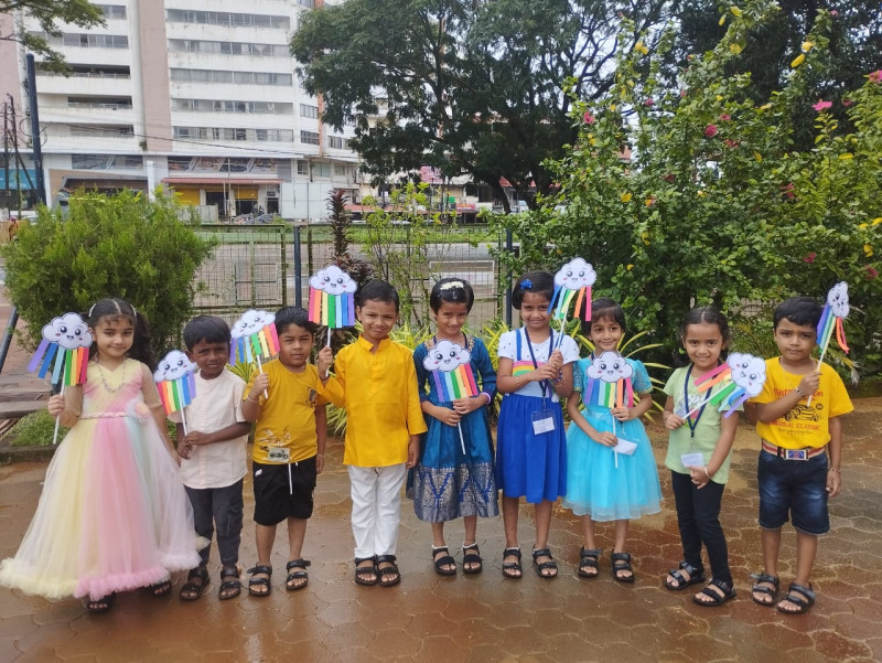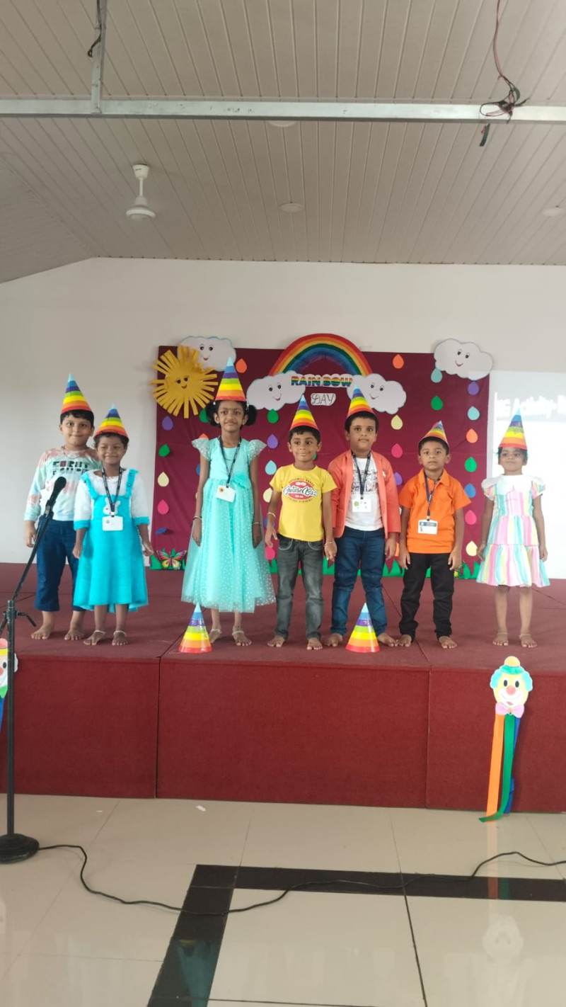 The classrooms were beautifully decorated with rainbow cut-outs, balloons, and colourful streamers. Teachers organized fun activities such as rainbow colouring, paper craft, and singing rhymes related to colours. The children enjoyed listening to the story of how rainbows are formed and even tried to draw their own rainbows.