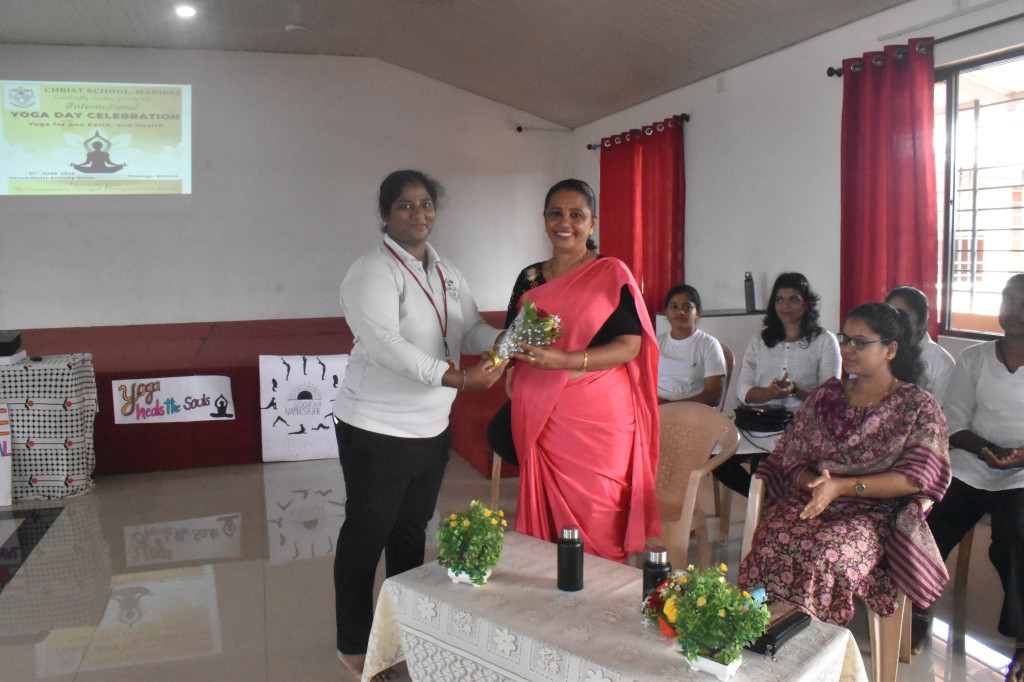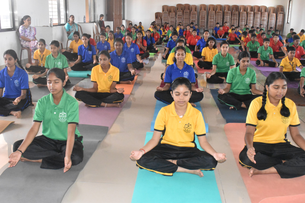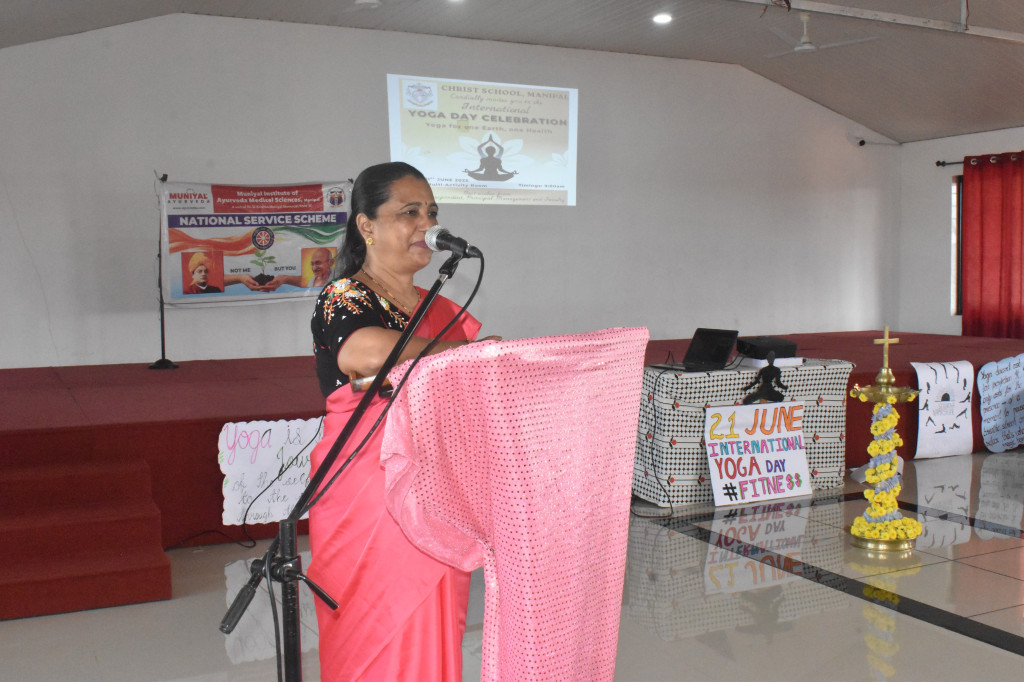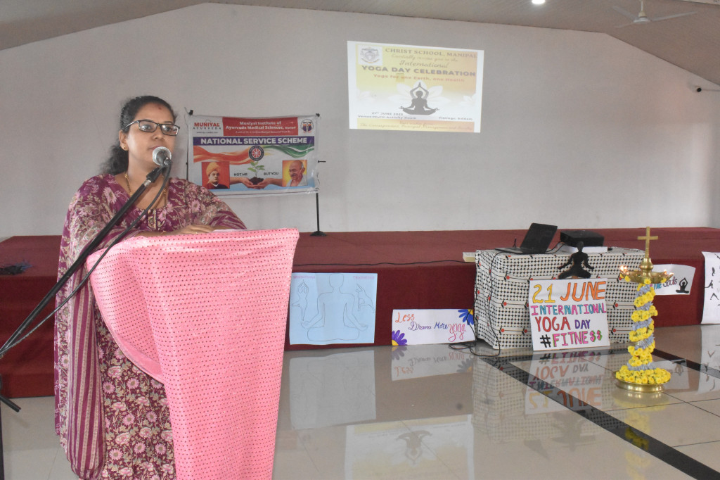The Principal, Ms. Eliza Vaz, shared her reflections on the occasion and encouraged students to incorporate yoga and meditation into their daily routine for holistic development.