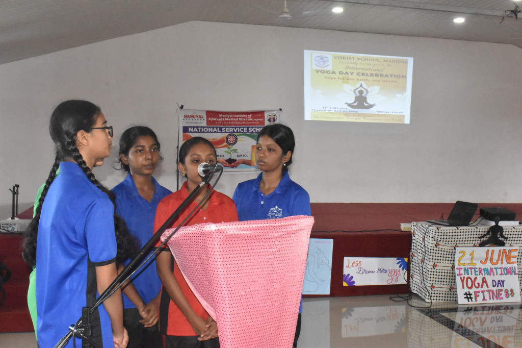 Christ School celebrated International Yoga Day on 21st June 2025 under the theme "Yoga for One Earth, One Health." The event aimed to highlight the importance of yoga in fostering a healthy body and a peaceful mind.