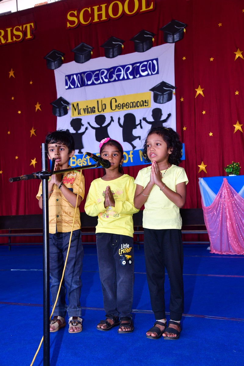 The Moving Up Celebration for the academic year 2024-25 at Christ School was held with great enthusiasm and grandeur, centered around the theme "Together With." The event commenced with an impressive Guard of Honour, accompanied by music and a dignified procession of dignitaries, teachers, and students, including the Chief Guest Rev. Fr. Santhosh A Pastor in charge UBM Christa Kripa Church Manipal, Correspondent Rev. Fr. Romeo Lewis, Principal Ms. Eliza Vaz and Mr.Alwyn Saldana, secretary Parish Pastoral Committee.